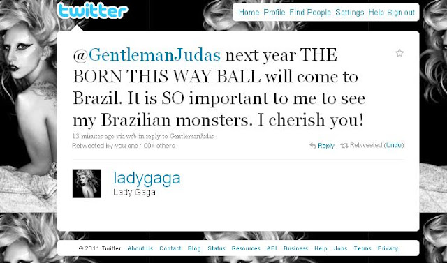"O próximo ano THE BORN THIS WAY BALL vai vir para o Brasil. É tão importante para mim ver meus monstros brasileiros. Amo-te!"